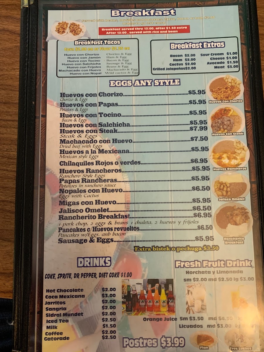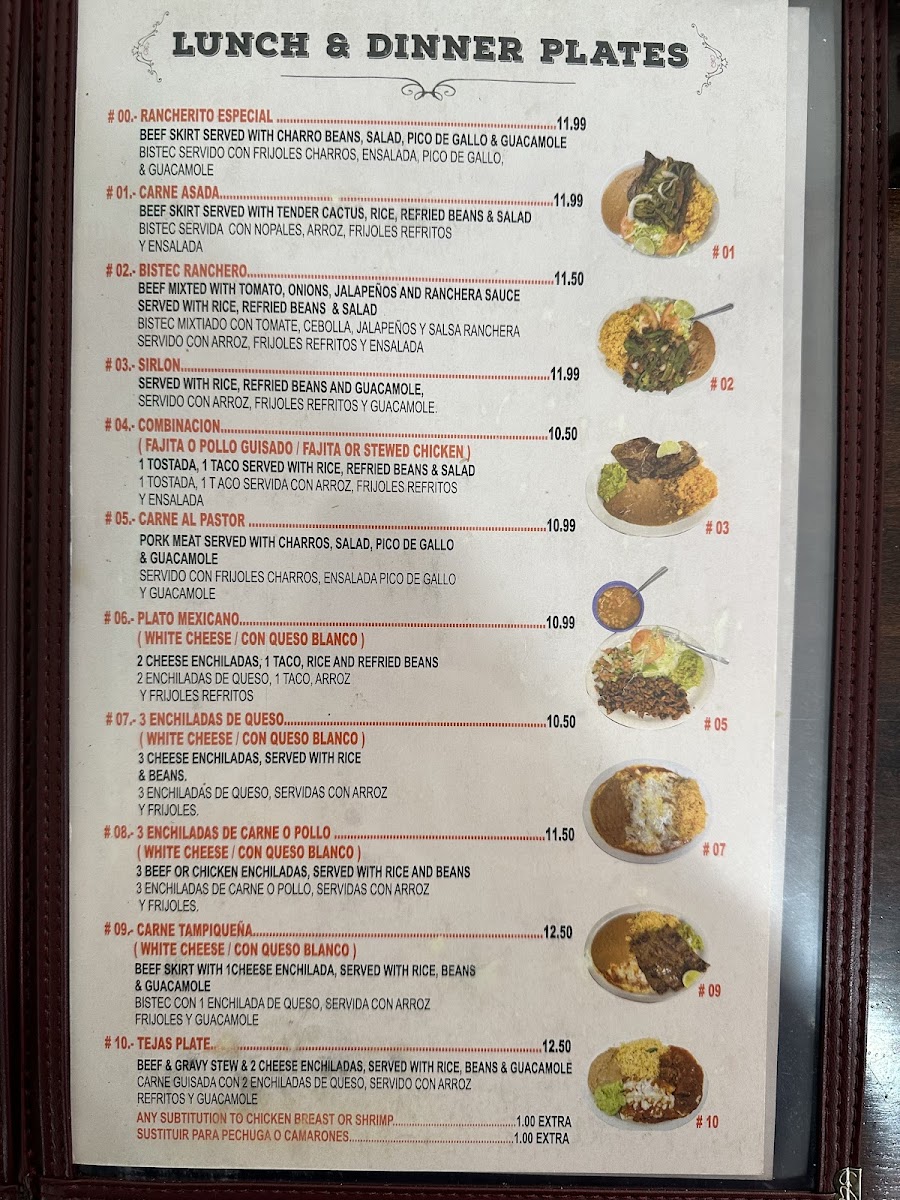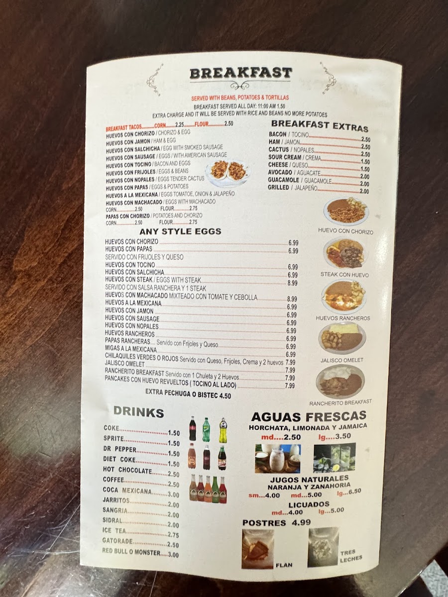 El Rancherito Taqueria offers a straightforward menu rooted in traditional Mexican and Latin American flavors, perfect for casual dining any time of day. Whether you're stopping by for a satisfying breakfast like the Rancherito Breakfast or settling in for lunch with hearty options such as the Jalisco Burrito with rice and beans, the menu reflects comforting, approachable meals that pair well with the warm and welcoming atmosphere.